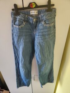 Baggy jeans met lage taille en een relaxed-fit pasvorm door de rechte pijpopeningen, in een lichte wassing, met trendy strikjes bij de zakken en taillebandverstellers in alle maten.