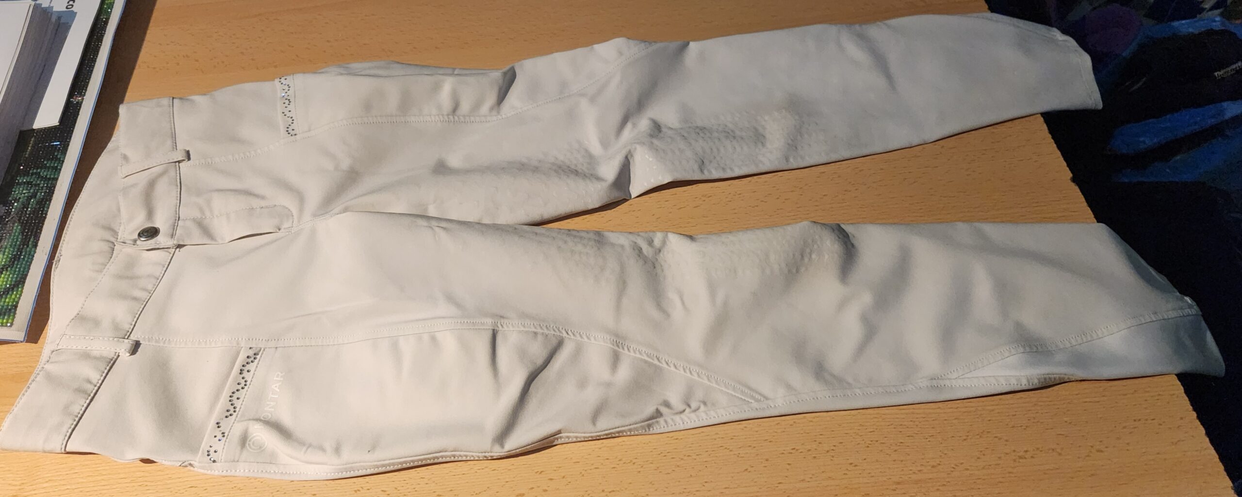 Witte paardrijbroek van het merk Montar. Perfect voor wedstrijden. De broek is in goede staat en comfortabel om te dragen. Niet vaak gedragen. Valt een maat kleiner.